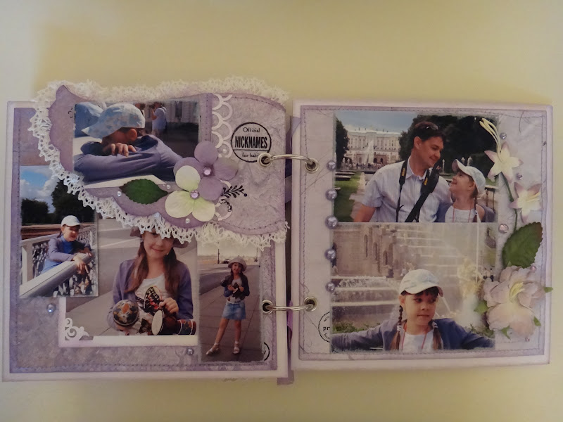 Делала вот такой альбомчик на заказ http://knot01.blogspot.com/2010/09/2.html но случилось так, что он так и остался жить у меня. Что ж бывает и такое. И вот мы с дочкой решили подарить ему новую жизнь. Так выглядет альбомчик с фоточками моей КРАСАВИЦЫ.